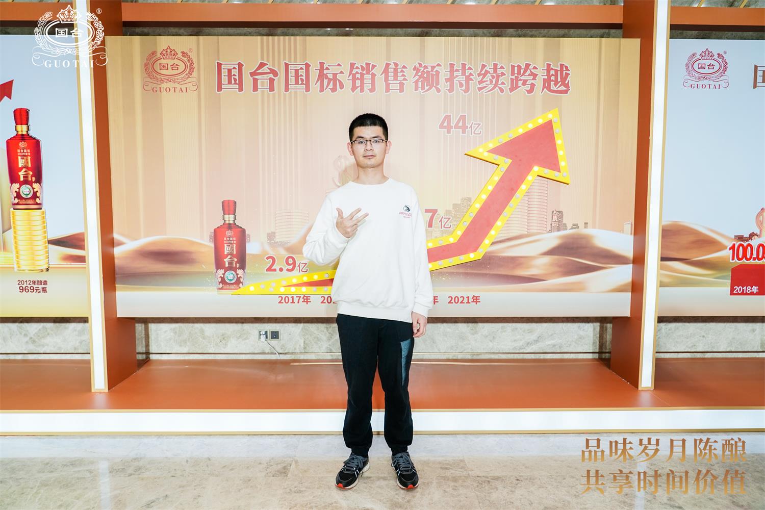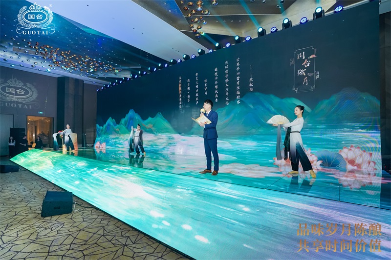 外場設(shè)計,以數(shù)字與上升箭頭顯示國臺國標酒的年份價值連年遞增,傳遞出國臺對于產(chǎn)品有著充分的品質(zhì)自信。嘉賓也通過具體的數(shù)據(jù)了解市場對于國臺國標的品質(zhì)認可。
