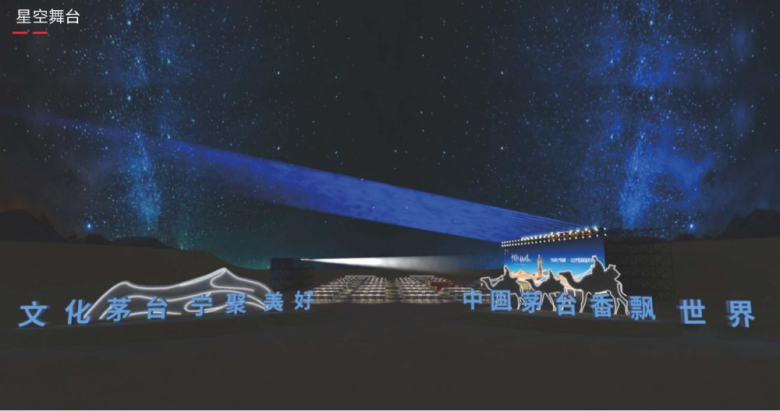 在嘉年華開幕式上,以“穿越千年,與茅臺共閱文化古卷”為概念,規(guī)劃了三大篇章,每一篇章以定制視頻引入,帶領(lǐng)現(xiàn)場嘉賓漫步茅臺文化與寧夏文化的交融。在戶外星空晚會上,以星星故鄉(xiāng)的概念構(gòu)筑星空燦爛的舞臺氛圍,以小茅和小巽的對話為線索,向嘉賓敬上三杯酒。圍繞著活動環(huán)節(jié),定制不同的背景視頻,包括激光秀、啟動儀式、火炬交接、情景朗誦、舞蹈節(jié)目等,精美的畫面和創(chuàng)意為現(xiàn)場帶來美的享受。