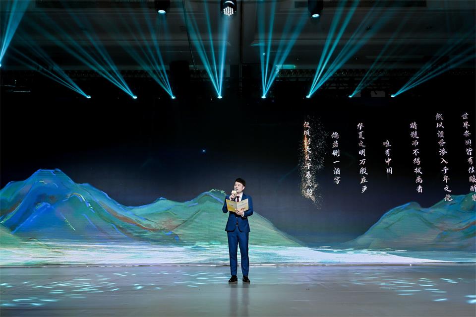 拓源為本次活動的舞蹈表演、啟動儀式等創(chuàng)作了不同的動態(tài)視頻,帶來豐富的視覺效果。聲光電、全息投影技術(shù)結(jié)合開合屏的運(yùn)用,實現(xiàn)了巨型全息酒瓶的震撼開場。動感的畫面帶來感官的刺激,屏幕緩緩打開,巨型酒瓶出現(xiàn),逐漸變換成國臺國標(biāo)酒瓶的形狀,牢牢抓住了現(xiàn)場來賓的視線。
