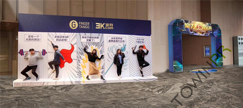2019年1月22日,主題為“聚力奮進”的3K游戲2019年度盛典在廣州朗豪酒店圓滿舉行。7小時的搭建時間,現(xiàn)場從無到有,拓源公關(guān)的小伙伴們準時按照既定目標完成。現(xiàn)場的所有元素都是取材于3K游戲的風格及人物,濃厚的二次元風格令在場的所有嘉賓仿佛置身于二次元世界,