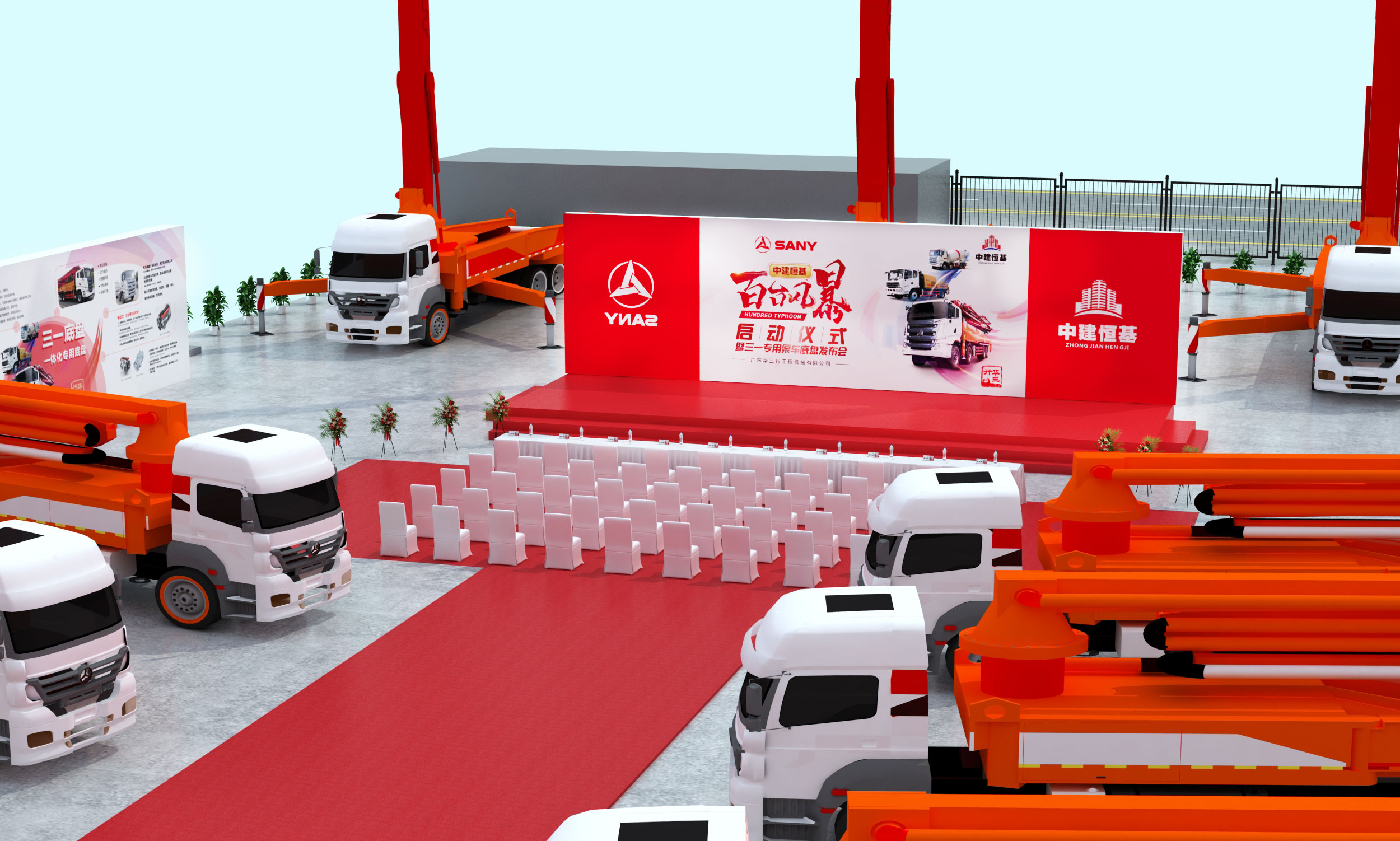 拓源新思廣告助力--中建恒基“百臺風(fēng)暴”啟動儀式暨三一專用泵車底盤發(fā)布會圓滿舉行