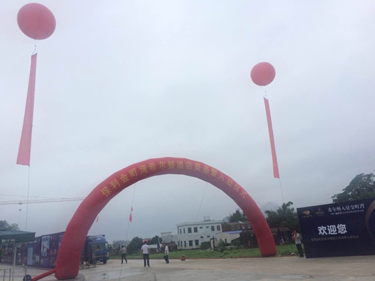 拓源在整個活動的氛圍布置上空飄、刀旗、充氣拱門的紅色熱情喜慶,使整個空曠的場面更顯大氣壯觀。