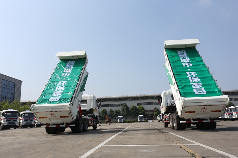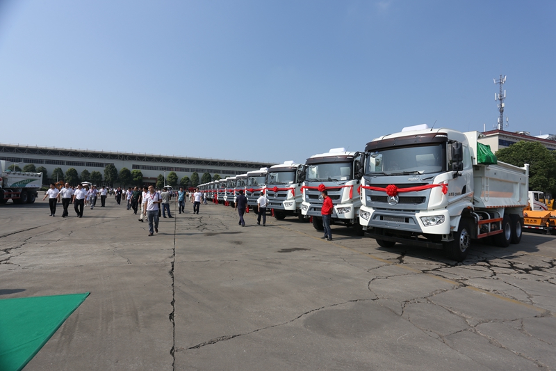 伴著響亮的鳴笛聲和禮花聲,31臺(tái)三一環(huán)保智能自卸車(chē)威武發(fā)車(chē),浩浩蕩蕩地開(kāi)往客戶(hù)工地,完成“環(huán)保俠”建設(shè)美好城市的綠色使命。
