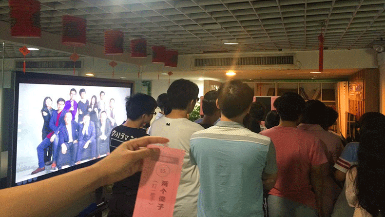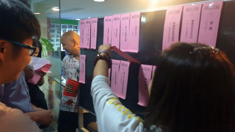 9月14日下午四點整,公司小伙伴齊聚會客廳。美女HR早已準備好了猜燈謎的小黑板。