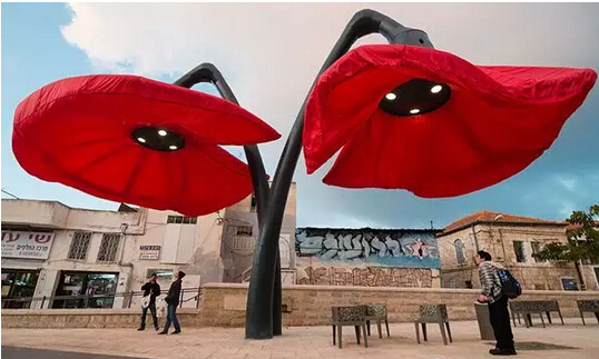 Warde 位于耶路撒冷市中心的 Vallero 廣場(chǎng)上,是 HQ Architects 公司的作品,為了規(guī)整城市空間,讓 Vallero 廣場(chǎng)(周?chē)抢幚韽S(chǎng)和發(fā)電廠(chǎng))與其他的區(qū)域劃分開(kāi)來(lái),他們樹(shù)立了四朵巨型可充氣花燈,同時(shí)也為耶路撒冷這座城市添置一個(gè)戶(hù)外景觀(guān)。